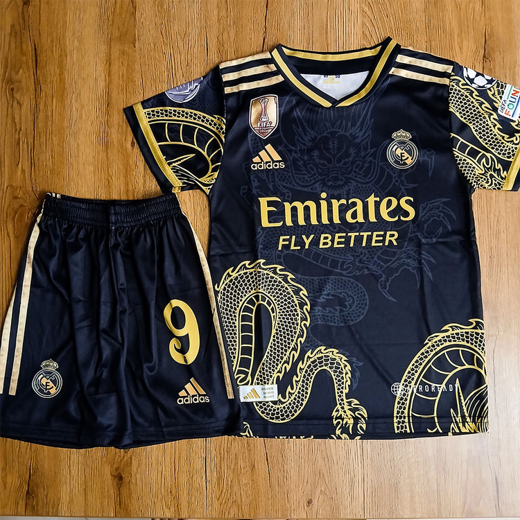 ست پیراهن شورت بچگانه و بزرگسال رئال مادرید طرح دراگون امباپه و وینی